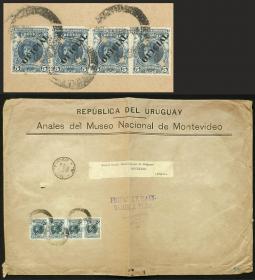 380 URUGUAY - HISTORIA POSTAL Sobre / N°Cat.: MB. Sobre oficial enviado por el Museo Nacional el 24/ENE/1905 desde Montevideo a Paris con franqueo oficial de 8c., arribo al dorso, excelente calidad. Ex-Loeb (su precio de venta: US$175) Precio inicial: US$ 100 Precio actual: US$ 100 Oferte US$ 111 o más | |