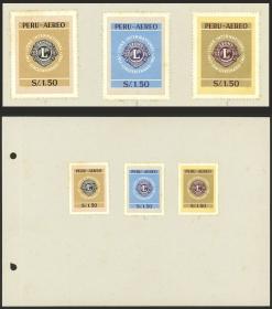 286 PERÚ - CORREO AÉREO Serie / N°Cat.: Sc.C206/8 MB. Sc.C206/208, 1967 Perú en el Mundo (muestra fotográfica), PRUEBAS de la serie de 3 valores en COLORES DIFERENTES a los adoptados, adheridas a la hoja de un muestrario, además otra hoja similar con la emisión en los colores adoptados pero con diferencias de diseño (por ej. en las tipografías de los valores faciales), MB y raro conjunto! Precio inicial: US$ 300 Precio actual: US$ 300 Oferte US$ 300 o más | |