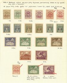 330 POLONIA - EMISIONES GENERALES Lote / Usado o sin usar N°Cat.: Yv.108/10+var. MB. Yvert 108/110, 1919 Sellos de Austria-Hungría sobrecargados, la serie de 3 valores bien desarrollada en 6 hojas de album, incluyendo sobrecargas invertidas, variedades de sobrecarga, sobres circulados y un estudio de las sobrecargas falsas, excelente calidad! IMPORTANTE: Recomiendo mirar TODAS las fotos de este conjunto, todo el material incluído está escaneado. Precio inicial: US$ 200 Precio actual: US$ 250 Oferte US$ 275 o más | |
