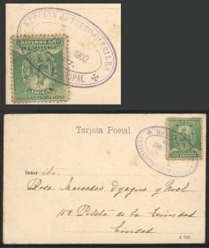 271 PERÚ - EMISIONES GENERALES Sello suelto / Sin usar (sin goma) N°Cat.: Sc.117A MB. Sc.117A, 1889 10c. Verde con sobrecarga "Unión Postal Universal - Lima" en rojo, y sobre esta sobrecarga SPECIMEN aplicada en el correo de Natal luego de recibirla como muestra desde la UPU, rarísima y única. NOTA: El correo de Natal adhería en hojas de album los sellos que recibía como muestras desde la UPU y a todos les aplicaba estas sobrecargas manuales, cada estampilla así sobrecargada es única e irrepetible. INCLUÍMOS LA FOTOCOPIA DE UN CERTIFICADO de las B.P.A. hecho para varios sellos, incluyendo a este. Precio inicial: US$ 50 Precio actual: US$ 50 Oferte US$ 50 o más | |