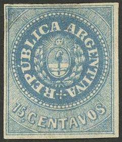 70 ARGENTINA - ESCUDITOS Sello suelto / Nuevo con bisagra N°Cat.: GJ.9 Valor de catál.: US$ 385+50% Aceptable-Buena GJ.9, 15c. Con acento color azul de extraordinaria nitidez, nuevo CON GOMA, peladurita al dorso, impactante frente, el valor alto de la serie con goma original es raro!!! Precio inicial: US$ 150 Precio actual: US$ 150 Oferte US$ 150 o más