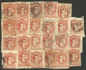 173 ARGENTINA - EMISIONES GENERALES Lote / Usado N°Cat.: GJ.38 Buena MGJ.38, más de 20 sellos de 5c. Rivadavia con variedad de matasellos Precio inicial: US$ 10 Precio actual: US$ 10 Oferte US$ 10 o más