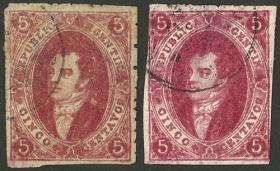 146 ARGENTINA - RIVADAVIAS Lote / Usado N°Cat.: GJ.26 Valor de catál.: 60,00 Aceptable-Buena GJ.26, 5c 5ª tirada, dos ejemplares en colores carmín ( tipo ) + rojo acarminado ( escaso ), ambos con peladuritas al dorso y muy buenos frentes! Precio inicial: US$ 18 Precio actual: US$ 18 Oferte US$ 18 o más