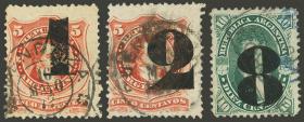 194 ARGENTINA - EMISIONES GENERALES Serie / Usado N°Cat.: GJ.61/63+63a Valor de catál.: 40,00 Buena-MB GJ.61/63+63a, serie completa de 3 valores, incluye VARIEDAD : 12c., con " 2 " sin colita Precio inicial: US$ 20 Precio actual: US$ 20 Oferte US$ 20 o más