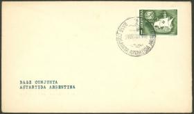 4 ANTÁRTIDA ARGENTINA - HISTORIA POSTAL Sobre / Usado N°Cat.: MB. Sobre con matasello " BASE CONJUNTA ANTÁRTIDA ", enviado el 27 de Octubre de 1961 a Bs As, franqueado con $1, GJ.1191, al dorso marca de arribo Precio inicial: US$ 5 Precio actual: US$ 5 Oferte US$ 5 o más