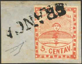 149 ARGENTINA - RIVADAVIAS Pieza / Usado N°Cat.: GJ.26 Aceptable-Buena GJ.26, 5c 5ª tirada sobre fragmento, defectitos, buen aspecto! Precio inicial: US$ 5 Precio actual: US$ 5 Oferte US$ 5 o más