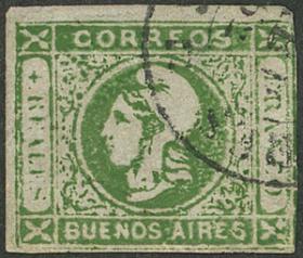 20 ARGENTINA - CABECITAS Sello suelto / Usado N°Cat.: GJ.16 Valor de catál.: 110,00 Aceptable-Buena GJ.16, 4 R. Verde, usado en Bs As en Abril de 1862, peladuritas al dorso, MB frente!! Precio inicial: US$ 15 Precio actual: US$ 15 Oferte US$ 15 o más