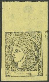 35 ARGENTINA - CORRIENTES Sello suelto / Sin usar (sin goma) N°Cat.: GJ.6 MB. GJ.6, 2c. Amarillo limón, Tipo 1, con inmenso BdH superior y marca de tornillo, firmado por V. Kneitschel al dorso, excelente!! Precio inicial: US$ 10 Precio actual: US$ 10 Oferte US$ 11 o más
