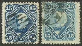 176 ARGENTINA - EMISIONES GENERALES Lote / Usado N°Cat.: GJ.40+41 Valor de catál.: 30,00 MB. GJ.40+41, fondo líneas cruzadas + líneas horizontales, MB Precio inicial: US$ 15 Precio actual: US$ 15 Oferte US$ 15 o más