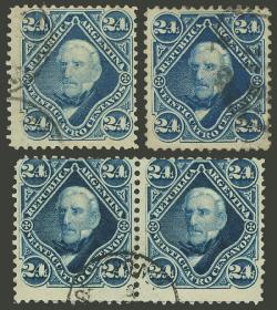 188 ARGENTINA - EMISIONES GENERALES Lote / Usado N°Cat.: GJ.55 Valor de catál.: 4,00 Buena-MB GJ.55, pareja + 2 sellos, en diferentes tonalidades de azul Precio inicial: US$ 2 Precio actual: US$ 2 Oferte US$ 2 o más
