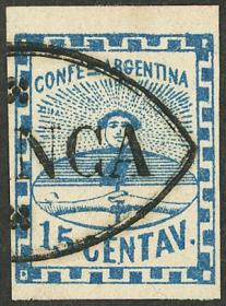 63 ARGENTINA - CONFEDERACIÓN Sello suelto / Usado N°Cat.: GJ.3 Valor de catál.: 250,00 Aceptable-Buena GJ.3, 15c Cifras Chicas con matasello de Rosario con FRANCA en doble elipse, firmado por Solari, defectitos, oportunidad!! Precio inicial: US$ 10 Precio actual: US$ 10 Oferte US$ 10 o más