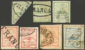 66 ARGENTINA - CONFEDERACIÓN Lote / N°Cat.: Aceptable-Buena 7 sellos con matasellos FALSOS o de FANTASIA, ideal para estudio, la calidad es variable, algunos con defectitos y otros MBs Precio inicial: US$ 10 Precio actual: US$ 10 Oferte US$ 10 o más