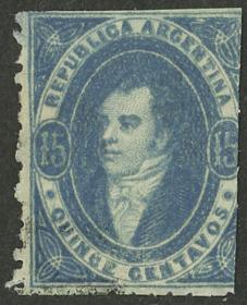 126 ARGENTINA - RIVADAVIAS Sello suelto / Usado N°Cat.: GJ.24 Valor de catál.: 70,00 Buena GJ.24, 15c, ejemplar con dentado horizontal desplazado Precio inicial: US$ 30 Precio actual: US$ 30 Oferte US$ 30 o más
