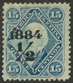 199 ARGENTINA - EMISIONES GENERALES Sello suelto / Nuevo con bisagra N°Cat.: GJ.67 Valor de catál.: 50,00 MB. GJ.67, ½c s/ 15c, sobrecarga negra Precio inicial: US$ 25 Precio actual: US$ 25 Oferte US$ 25 o más