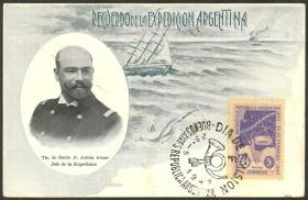 9 ANTÁRTIDA ARGENTINA - TARJETAS POSTALES Sobre / Usado N°Cat.: Buena-MB Tarjeta Postal " Recuerdo de la Expedición Argentina " con foto del Tte de Fragata R. Hermelo ( Segundo Comandante ), con GJ.943 y matasello primer día Precio inicial: US$ 25 Precio actual: US$ 25 Oferte US$ 25 o más