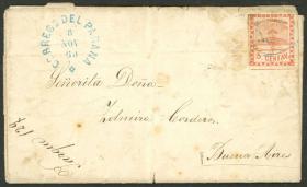 53 ARGENTINA - CONFEDERACIÓN Sobre / Usado N°Cat.: GJ.1 Valor de catál.: 200,00 Buena-MB GJ.1, 5c Cifras Chicas utilizado como franqueo en una cubierta enviada desde Rosario a Goya, firmada por Solari, muy bonita!! Precio inicial: US$ 100 Precio actual: US$ 100 Oferte US$ 100 o más