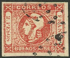 27 ARGENTINA - CABECITAS Sello suelto / Usado N°Cat.: GJ.18 Valor de catál.: 135,00 Aceptable-Buena GJ.18, 2 P. Rojo, con VARIEDAD : " AIRESo ", ínfimo adelgazamiento del papel en la zona de la bisagra sin importancia, frente de lujo!!! Precio inicial: US$ 60 Precio actual: US$ 60 Oferte US$ 60 o más