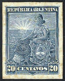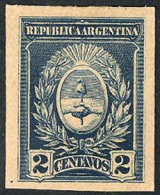 344 ARGENTINA - EMISIONES GENERALES Sello suelto / N°Cat.: Buena-MB Escudo, NO ADOPTADO, impreso sobre cartón en color azul (V.K. 1958 Tomo II pág. 699), MB calidad! Precio inicial: US$ 10 Precio actual: US$ 10 Oferte US$ 10 o más