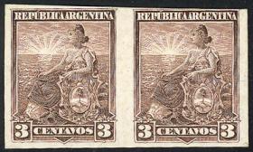 302 ARGENTINA - EMISIONES GENERALES Pareja / N°Cat.: GJ.219 Buena-MB GJ.219, en pareja, PRUEBA de impresión sobre cartón satinado, en color castaño rojizo (V.K. 1958 Tomo II pág. 696), MB calidad!! Precio inicial: US$ 8 Precio actual: US$ 8 Oferte US$ 8 o más