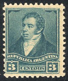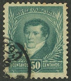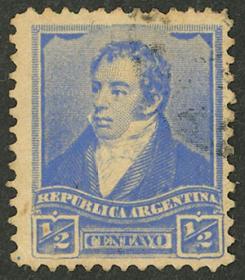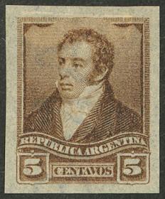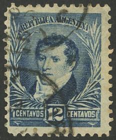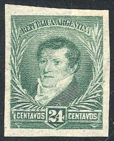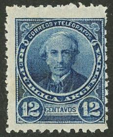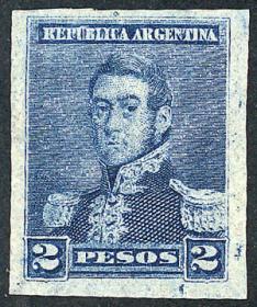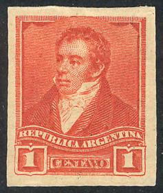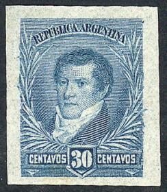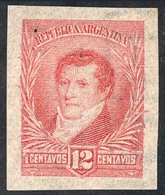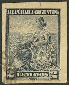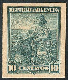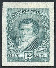 256 ARGENTINA - EMISIONES GENERALES Sello suelto / N°Cat.: GJ.138 MB. GJ.138, PRUEBA de impresión sobre cartón, en color azul verdoso Precio inicial: US$ 5 Precio actual: US$ 5 Oferte US$ 5 o más