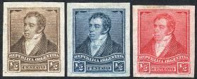 261 ARGENTINA - EMISIONES GENERALES Lote / N°Cat.: GJ.140 Buena-MB GJ.140, 3 PRUEBAS de impresión sobre papel delgado, en diferentes colores (V.K. 1958 Tomo II pág. 694), MB!! Precio inicial: US$ 15 Precio actual: US$ 15 Oferte US$ 15 o más