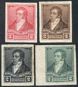 259 ARGENTINA - EMISIONES GENERALES Lote / N°Cat.: GJ.139 Buena-MB GJ.139, 4 PRUEBAS de impresión sobre papel delgado, en diferentes colores (V.K. 1958 Tomo II pág. 694), MB!! Precio inicial: US$ 20 Precio actual: US$ 20 Oferte US$ 20 o más
