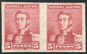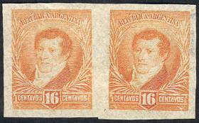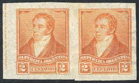 277 ARGENTINA - EMISIONES GENERALES Pareja / N°Cat.: GJ.151 Buena-MB GJ.151, pareja, PRUEBA de impresión sobre papel delgado, en color rojo (V.K. 1958 Tomo II pág. 694), MB!! Precio inicial: US$ 10 Precio actual: US$ 10 Oferte US$ 10 o más