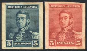 270 ARGENTINA - EMISIONES GENERALES Lote / N°Cat.: GJ.146 Buena-MB GJ.146, 2 PRUEBAS de impresión sobre papel delgado, en diferentes colores (V.K. 1958 Tomo II pág. 694), MB!! Precio inicial: US$ 10 Precio actual: US$ 10 Oferte US$ 10 o más