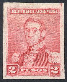 276 ARGENTINA - EMISIONES GENERALES Sello suelto / N°Cat.: GJ.150 Buena-MB GJ.150, PRUEBA de impresión sobre papel delgado con filigrana "SCHREIBMASCHINEN-PAPIER", en color rosa rojo (V.K. 1958 Tomo II pág. 694), MB!! Precio inicial: US$ 5 Precio actual: US$ 5 Oferte US$ 5 o más