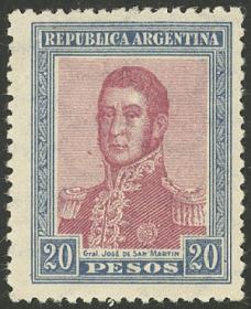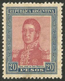 393 ARGENTINA - EMISIONES GENERALES Sello suelto / Nuevo con bisagra N°Cat.: GJ.455 Valor de catál.: 90,00 MB. GJ.455, $20 San Martín, valor alto de la serie, firmado por V. Kneitschel + sellito de garantía de Pardo, MB!! Precio inicial: US$ 50 Precio actual: US$ 50 Oferte US$ 50 o más