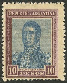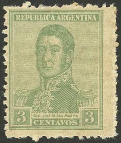 333 ARGENTINA - EMISIONES GENERALES Sello suelto / Nuevo con bisagra N°Cat.: GJ.296a Valor de catál.: 20,00 Buena-MB GJ.296a, con VARIEDAD : sin leyenda " San Martín " Precio inicial: US$ 12 Precio actual: US$ 12 Oferte US$ 12 o más