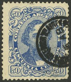242 ARGENTINA - EMISIONES GENERALES Sello suelto / Usado N°Cat.: GJ.120 Valor de catál.: 300,00 MB. GJ.120, ½c, dentado 12 x 11½, usado en Bs As el 27 de Noviembre de 1890, excelente calidad, RARO!! Precio inicial: US$ 200 Precio actual: US$ 200 Oferte US$ 221 o más