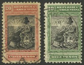 316 ARGENTINA - EMISIONES GENERALES Serie / Usado N°Cat.: GJ.237/38 Valor de catál.: 53,00 Buena-MB GJ.237/38, los 2 valores altos de la serie finamente matasellados Precio inicial: US$ 20 Precio actual: US$ 20 Oferte US$ 20 o más