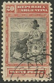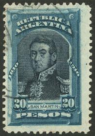 224 ARGENTINA - EMISIONES GENERALES Sello suelto / Usado N°Cat.: GJ.93 Valor de catál.: 20,00 MB. GJ.93, valor alto de la serie Precio inicial: US$ 10 Precio actual: US$ 10 Oferte US$ 10 o más