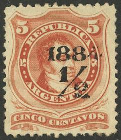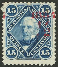 206 ARGENTINA - EMISIONES GENERALES Sello suelto / Sin usar (sin goma) N°Cat.: GJ.72 MB. GJ.72, con VARIEDAD : sobrecarga desplazada Precio inicial: US$ 10 Precio actual: US$ 10 Oferte US$ 10 o más