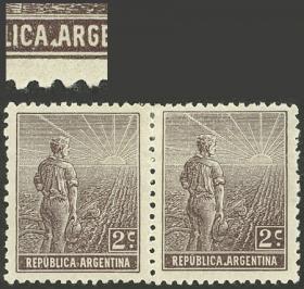 348 ARGENTINA - EMISIONES GENERALES Pareja / Nuevo con bisagra N°Cat.: GJ.321c Valor de catál.: 15,00 MB. GJ.321c, pareja, uno con VARIEDAD : primera " A " de ARGENTINA con adorno, pos.20, muy escaso! Precio inicial: US$ 15 Precio actual: US$ 15 Oferte US$ 15 o más
