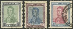 390 ARGENTINA - EMISIONES GENERALES Serie / Usado N°Cat.: GJ.453/55 Valor de catál.: 63,00 Buena-MB GJ.453/55, San Martín, los 3 valores altos de la serie Precio inicial: US$ 30 Precio actual: US$ 30 Oferte US$ 30 o más