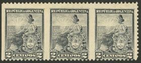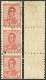 384 ARGENTINA - EMISIONES GENERALES Multiplo / Usado N°Cat.: GJ.428 Buena GJ.428, tira de 3, el del centro con VARIEDAD en la filigrana : una fila de hexágonos muy largos Precio inicial: US$ 5 Precio actual: US$ 5 Oferte US$ 5 o más