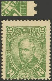 338 ARGENTINA - EMISIONES GENERALES Sello suelto / N°Cat.: GJ.303 MB. GJ.303, PRUEBA de impresión con BdH y leyenda del impresor, sobre papel mediano liso, en color verde, MB Precio inicial: US$ 2 Precio actual: US$ 2 Oferte US$ 2 o más
