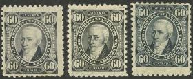 235 ARGENTINA - EMISIONES GENERALES Lote / Nuevo con bisagra N°Cat.: GJ.114+14A+14B Valor de catál.: 65,00 Buena GJ.114+14A+14B, en colores azul negro acerado + gris negro + gris azulado, MB Precio inicial: US$ 35 Precio actual: US$ 35 Oferte US$ 35 o más
