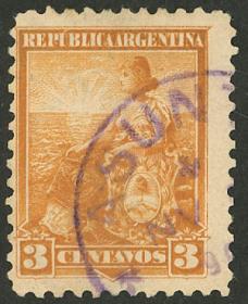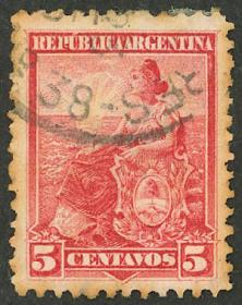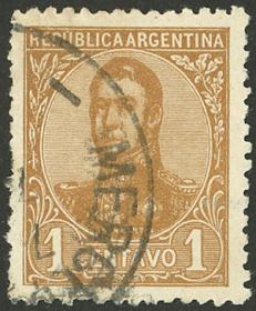 284 ARGENTINA - EMISIONES GENERALES Sello suelto / Usado N°Cat.: GJ.168 Valor de catál.: 15,00 Buena-MB GJ.168, filigrana sol chico, dentado 11½ x 12¼ Precio inicial: US$ 8 Precio actual: US$ 8 Oferte US$ 8 o más