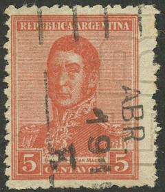 396 ARGENTINA - EMISIONES GENERALES Sello suelto / Nuevo Mint N°Cat.: GJ.471 MB. GJ.471, con VARIEDAD : retintado al dorso Precio inicial: US$ 5 Precio actual: US$ 5 Oferte US$ 5 o más