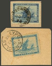 314 ARGENTINA - EMISIONES GENERALES Pareja / N°Cat.: GJ.234 Buena-MB GJ.234, en pareja, PRUEBA de impresión sobre cartón satinado, en color azul (V.K. 1958 Tomo II pág. 696), MB calidad!! Precio inicial: US$ 8 Precio actual: US$ 8 Oferte US$ 8 o más