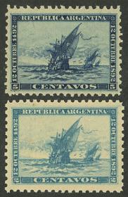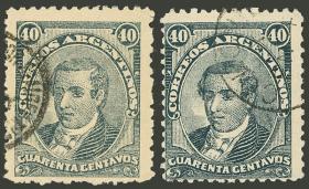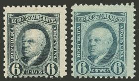 230 ARGENTINA - EMISIONES GENERALES Serie / Nuevo con bisagra N°Cat.: GJ.108+108A Valor de catál.: 15,00 MB. GJ.108 + 108A, colores azul pizarra + azul claro verdoso Precio inicial: US$ 9 Precio actual: US$ 9 Oferte US$ 9 o más