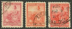 313 ARGENTINA - EMISIONES GENERALES Lote / Usado N°Cat.: GJ.231/233 Valor de catál.: 4,90 Buena-MB GJ.231/233, los 3 colores del 30c Precio inicial: US$ 2 Precio actual: US$ 2 Oferte US$ 2 o más