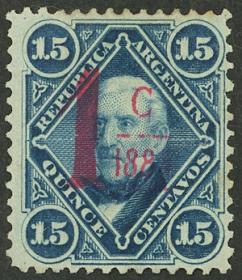 208 ARGENTINA - EMISIONES GENERALES Sello suelto / Sin usar (sin goma) N°Cat.: GJ.74 Valor de catál.: 20,00 MB. GJ.74, 1c s/ 15c, sobrecarga carmín Precio inicial: US$ 7 Precio actual: US$ 7 Oferte US$ 7 o más