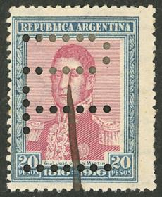 372 ARGENTINA - EMISIONES GENERALES Sello suelto / Usado N°Cat.: GJ.382O Valor de catál.: 28,00 Buena GJ.382O, $20, Labrador perforado, impreso en papel italiano, filigrana hexágonos verticales, se adjunta impreso en papel alemán, filigrana hexágonos horizontales Precio inicial: US$ 12 Precio actual: US$ 12 Oferte US$ 12 o más