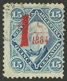 211 ARGENTINA - EMISIONES GENERALES Sello suelto / Usado N°Cat.: GJ.75a Valor de catál.: 60,00 Buena-MB GJ.75a, 1c s/ 15c sobrecarga bermellón, con VARIEDAD : sin trazo debajo de " 1884 " Precio inicial: US$ 36 Precio actual: US$ 36 Oferte US$ 36 o más