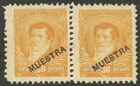 269 ARGENTINA - EMISIONES GENERALES Pareja / N°Cat.: GJ.145 Buena-MB GJ.145, pareja, PRUEBA de impresión sobre papel delgado, en color naranja (V.K. 1958 Tomo II pág. 694), MB!! Precio inicial: US$ 10 Precio actual: US$ 10 Oferte US$ 10 o más