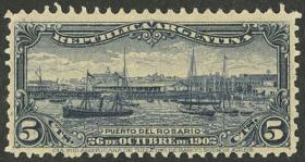 323 ARGENTINA - EMISIONES GENERALES Sello suelto / Nuevo con bisagra N°Cat.: GJ.273 Valor de catál.: 5,00 MB. GJ.273, Inauguración del Puerto de Rosario Precio inicial: US$ 2 Precio actual: US$ 2 Oferte US$ 2 o más